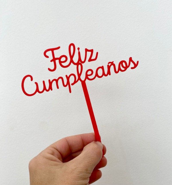 Cake topper "Feliz Cumpleaños" cursiva rojo