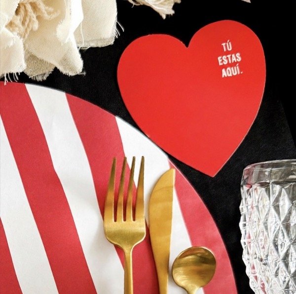 Platos de sitio redondos, 34 cm. de diámetro, papel obra 80 Gr, FSC + 12 posavasos en forma de corazón.