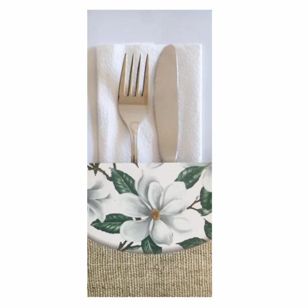 Porta cubiertos - servilleta, papel obra 80 Gr, FSC, presentación x 24 unidades.