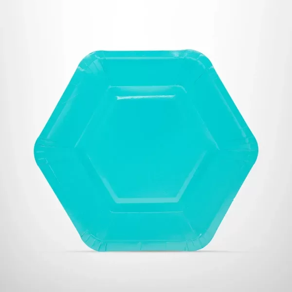 PLATO DE POLIPAPEL HEXAGONAL CELESTE x 6 unidades