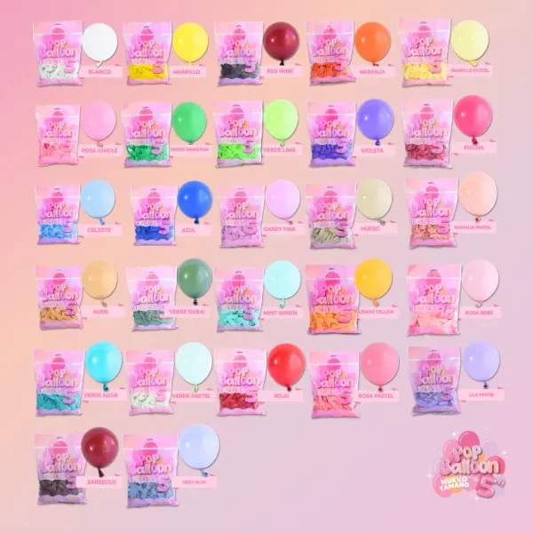 GLOBOS STANDARD 5" POP BALLOON PAQUETE X100 UNID. ROSA BEBE