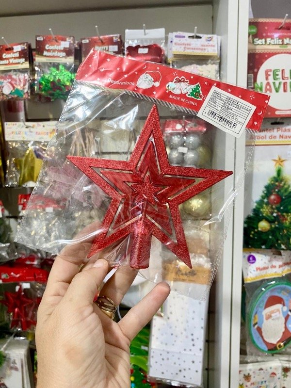 Adorno Navideño Puntal Estrella Calado Rojo 14cm