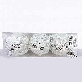 BOLAS NAVIDEÑAS BLANCAS Y PLATEADAS X3 8CM CAJA PVC