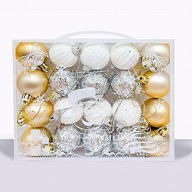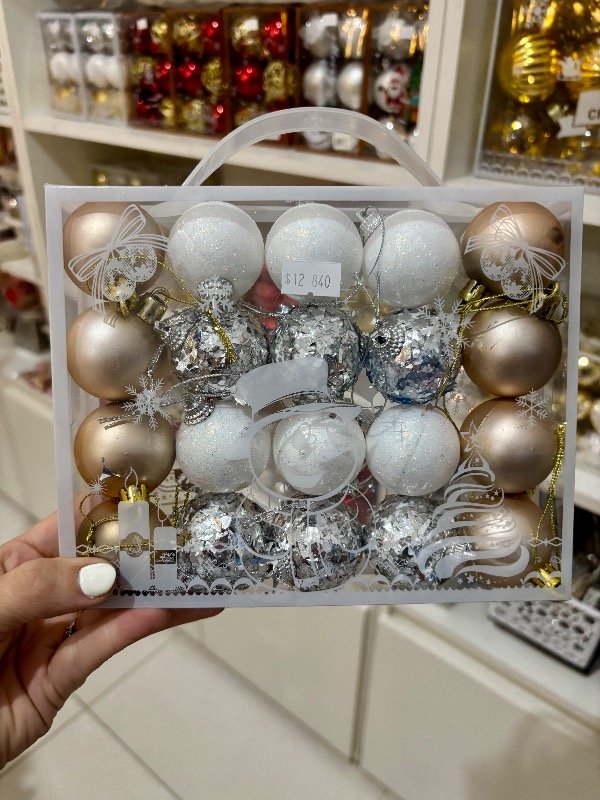 BOLAS NAVIDEÑAS PLATEADO - BLANCO - DORADO X20 4CM CAJA PVC