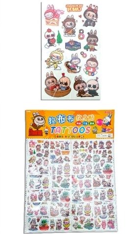 PLANCHA TATUAJE TEMPORAL PERSONAJES LABUBU MODELOS SURTIDOS